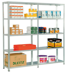 Schraubregal, verzinkt, Anbaufeld mit 6 Stahl- Fachböden, verzinkt, Fachlast 250 kg BxTxH 870x600x2500 mm