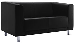 Sofa, 2-sitzer, eckig, BxTxH 1400x750x680-760mm, Sitz BxT 1060x550mm, Kunstleder, schwarz, Füße verchromt