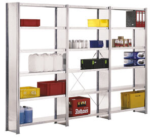 Steckregal mit Seitenwänden, verzinkt, Grundfeld, mit 5 Stahl-Fachböden, verzinkt, Fachlast 250 kg BxTxH 1285x600x2000 mm